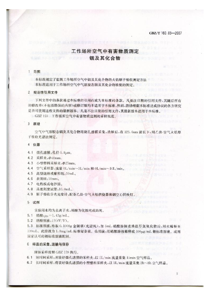 GBZ/T 160.83-2007 工作场所空气有毒物质测定 铟及其化合物
