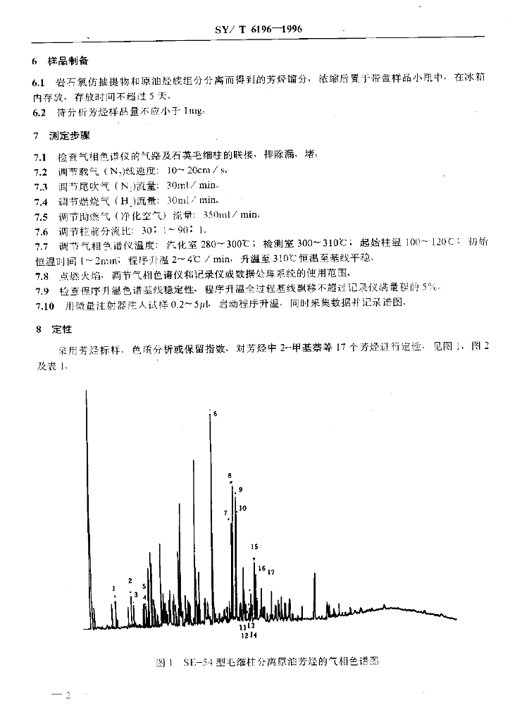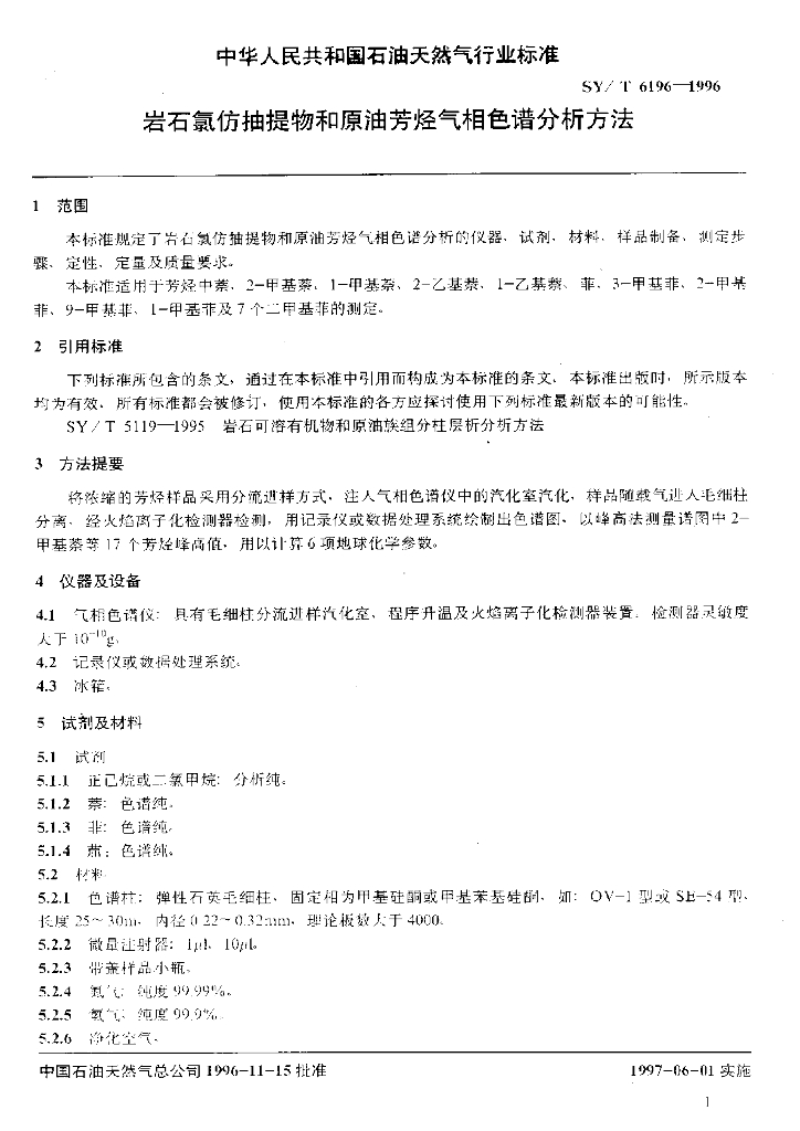 SY/T 6196-1996 岩石氯仿抽提物和原油芳烃气相色谱分析方法