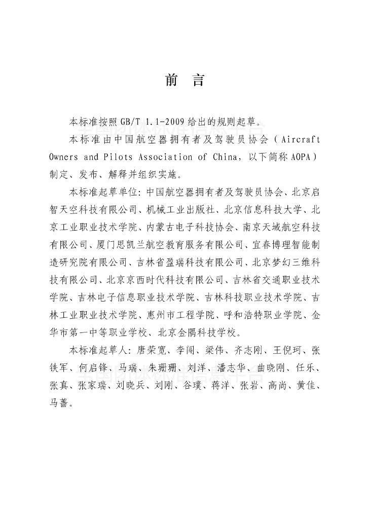 - 团体名称:中国航空器拥有者及驾驶员协会