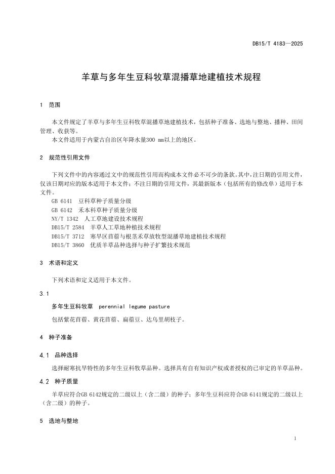 DB15/T 4183-2025 羊草与多年生豆科牧草混播草地建植技术规程