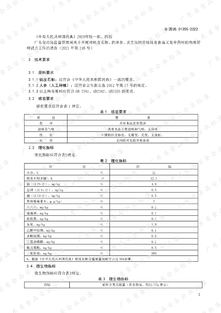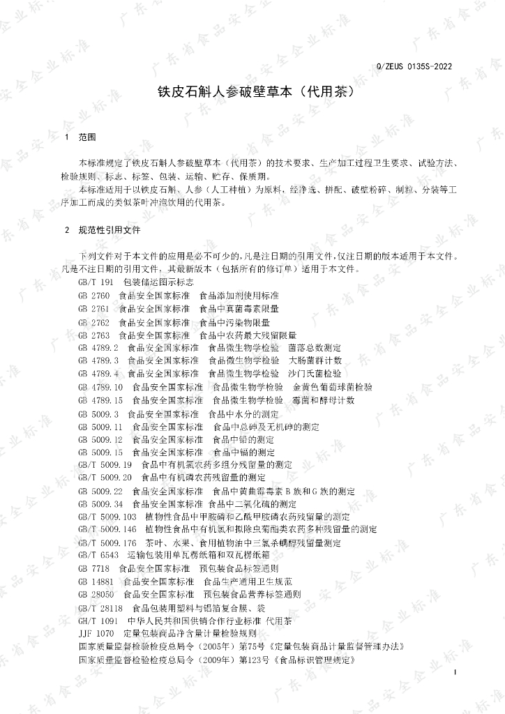 Q/ZEUS 0135S-2022 铁皮石斛人参破壁草本(代用茶)