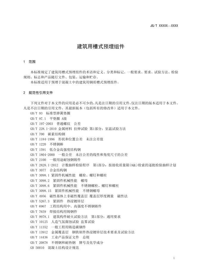 JG/T 560-2019 建筑用槽式预埋组件