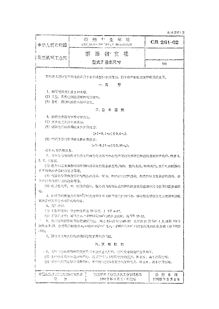 CB 261-1962 圆形鍋支柱型式及基本尺寸