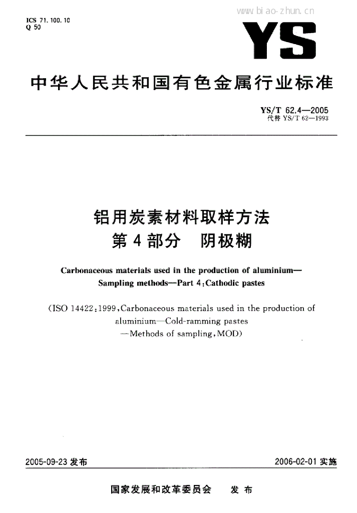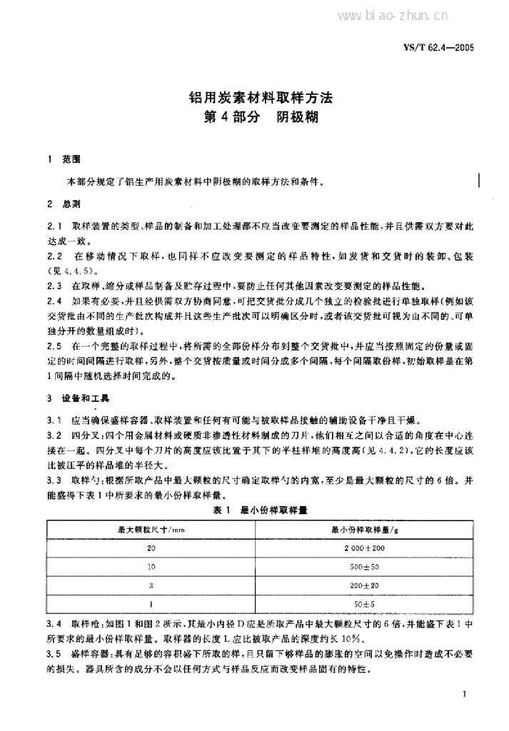 YS/T 62.4-2005 铝用炭素材料取样方法 第四部分 阴极糊