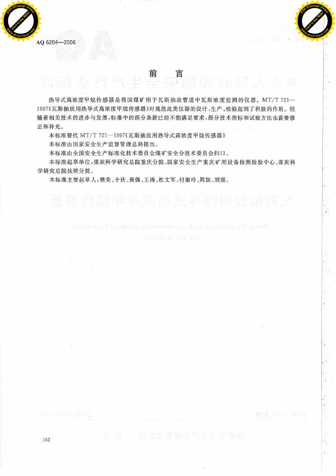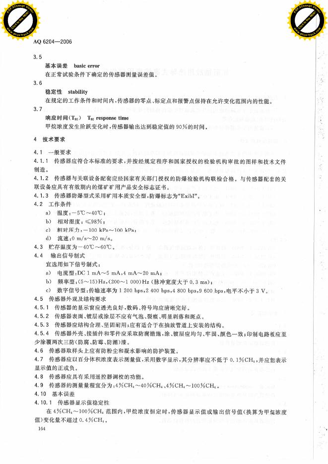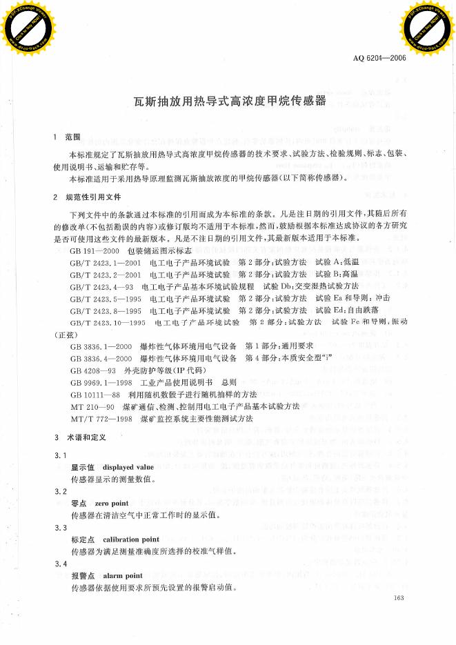 AQ 6204-2006 瓦斯抽放用热导式高浓度甲烷传感器