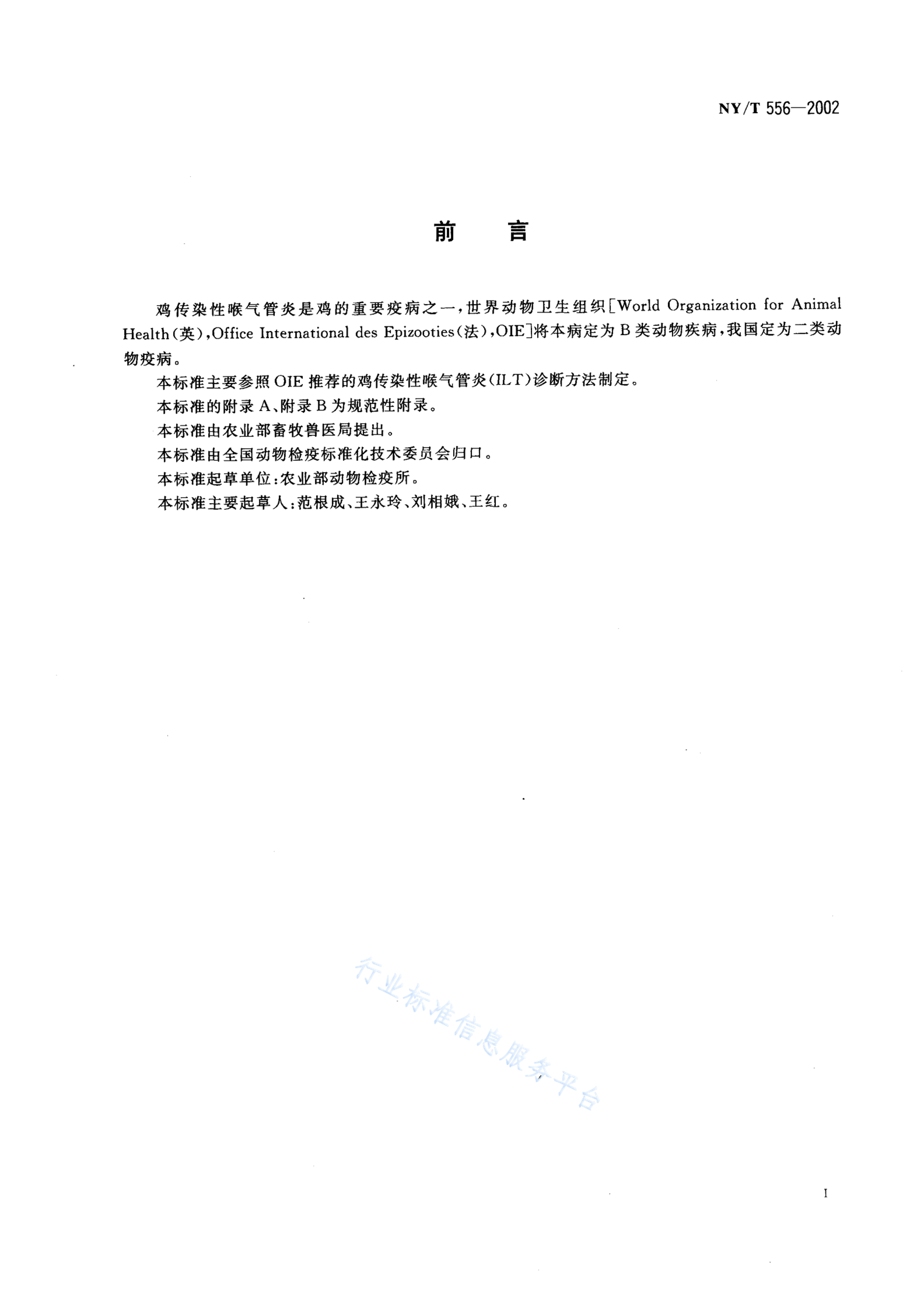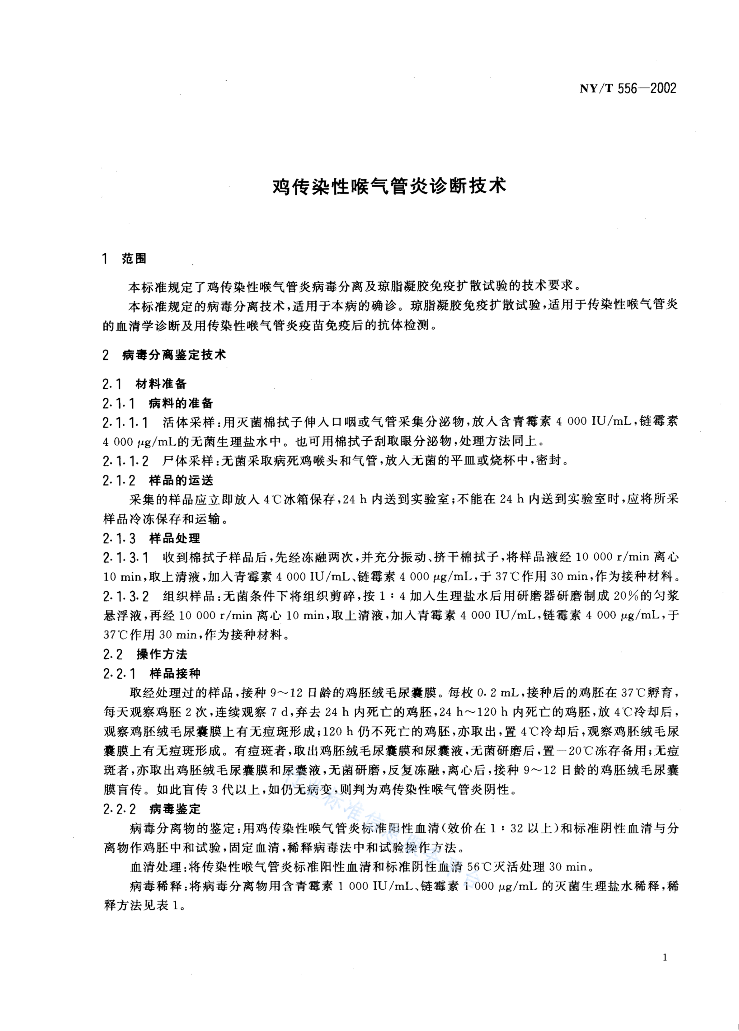 NY/T 556-2002 鸡传染性喉气管炎诊断技术