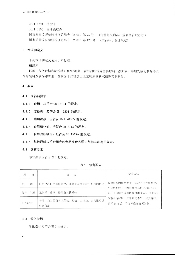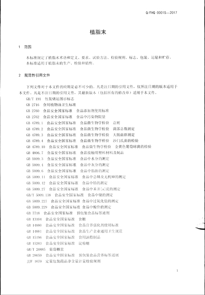 Q/FHQ 0001S-2017 植脂末
