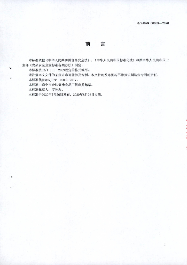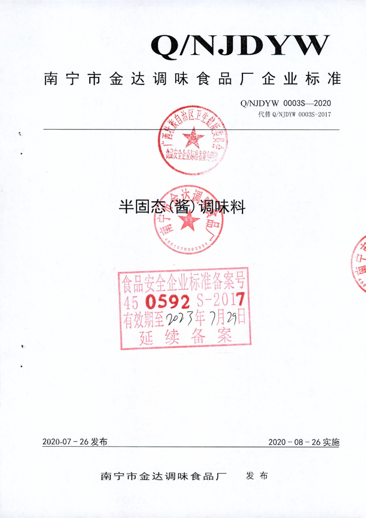 Q/NJDYW 0003S-2020 半固态(酱)调味料