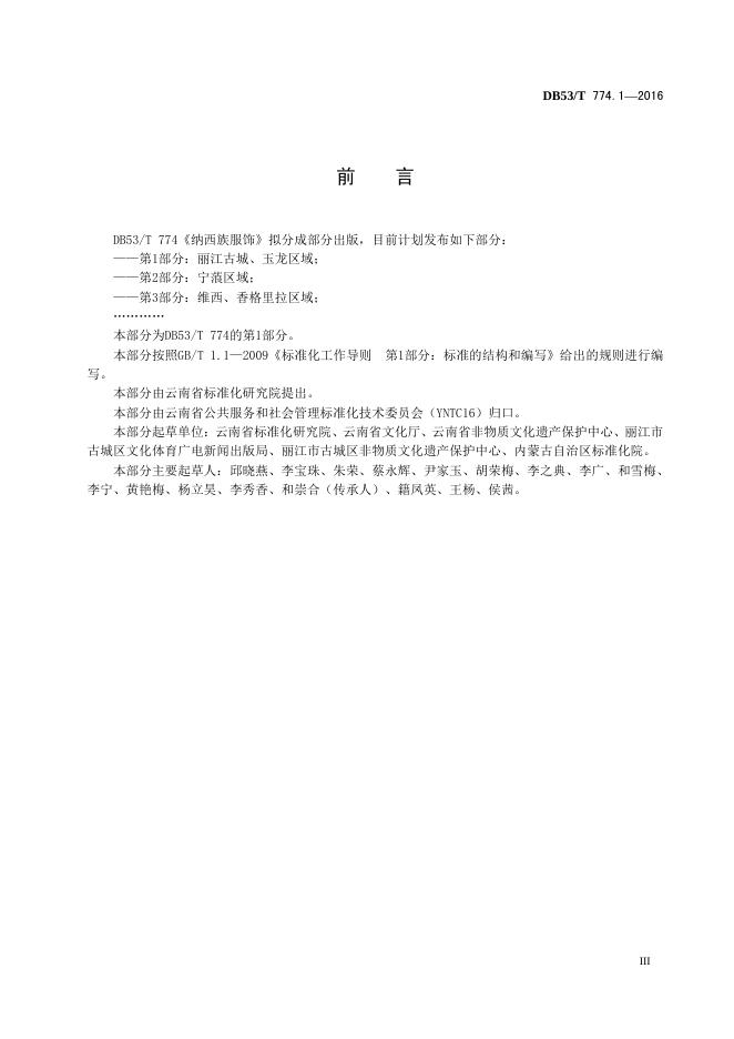 云南省标准化研究院、云南省文化厅、云南省非物质文化遗产保护中心、丽江市古城区文化体育广电新闻出版局、丽江市古城区非物质文化遗产保护中心、内蒙古自治区标准化院