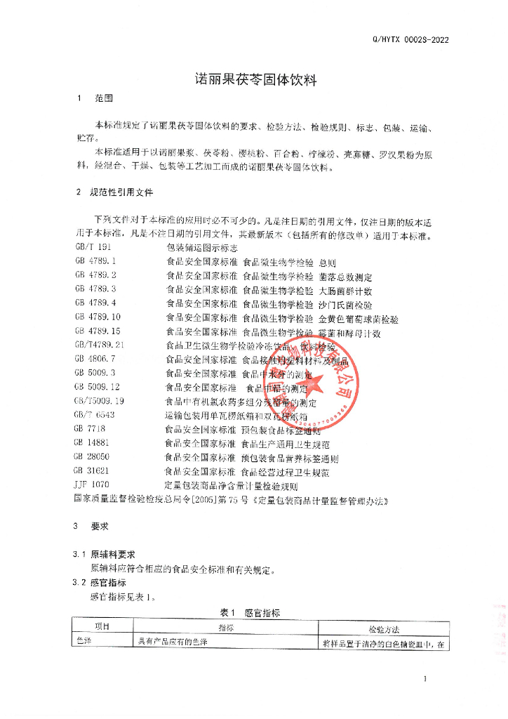 Q/HYTX 0002S-2022 诺丽果茯苓固体饮料