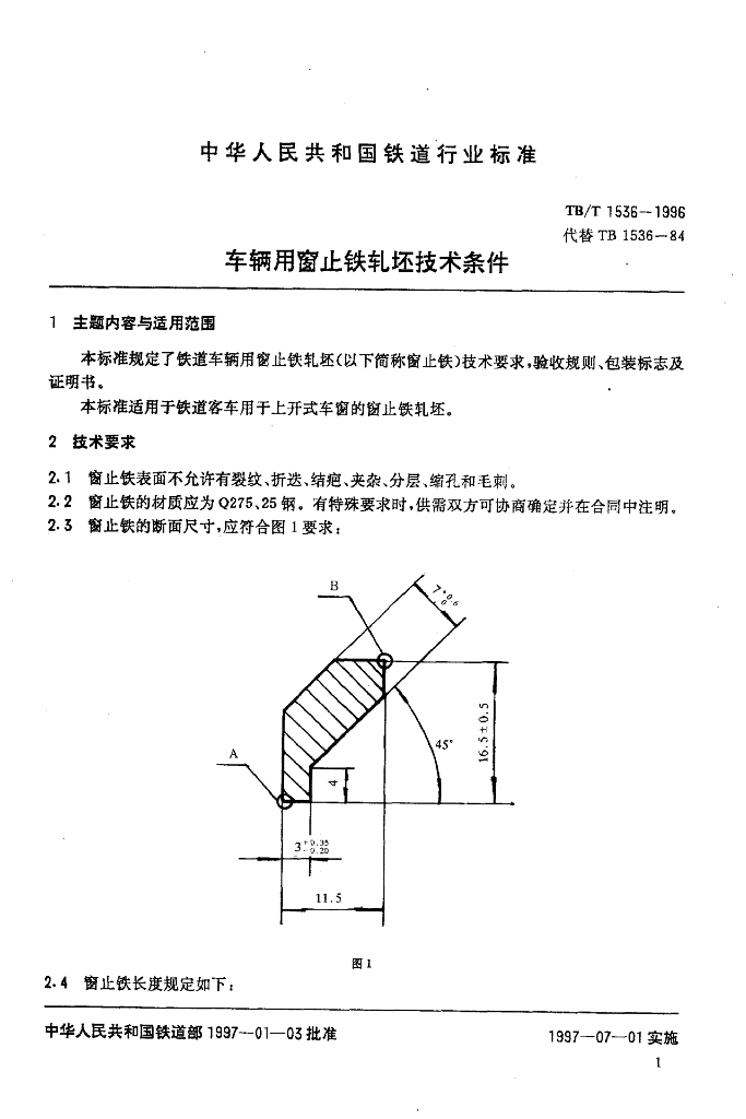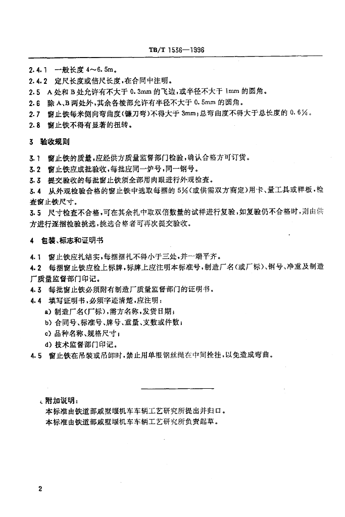 TB/T 1536-1996 车辆用窗止铁轧坯技术条件