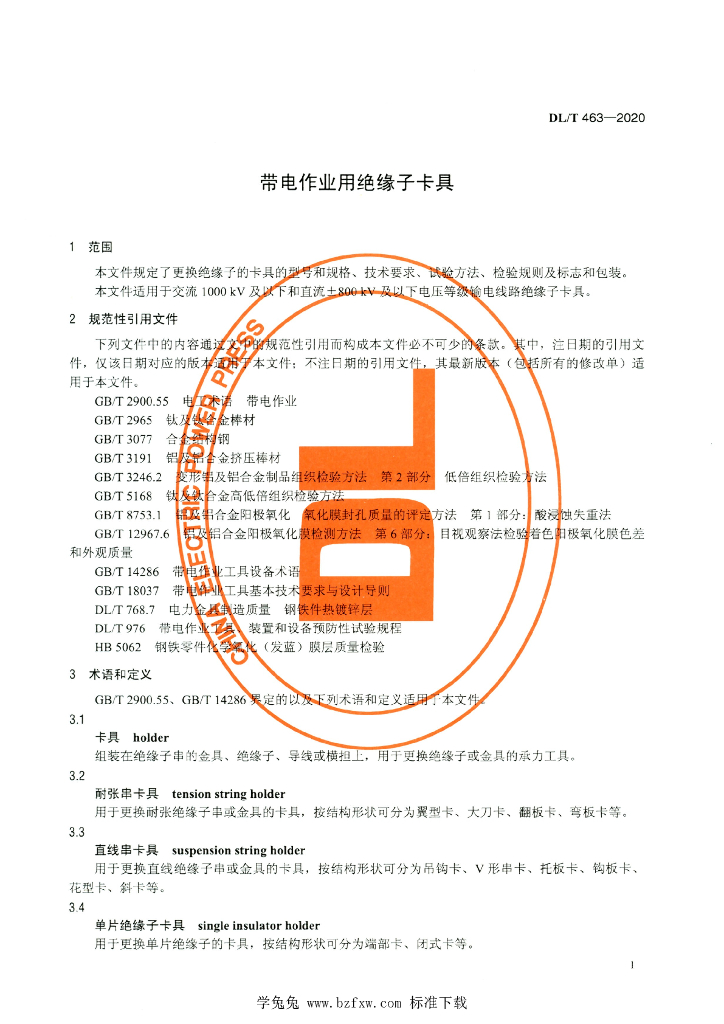 DL/T 463-2020 带电作业用绝缘子卡具