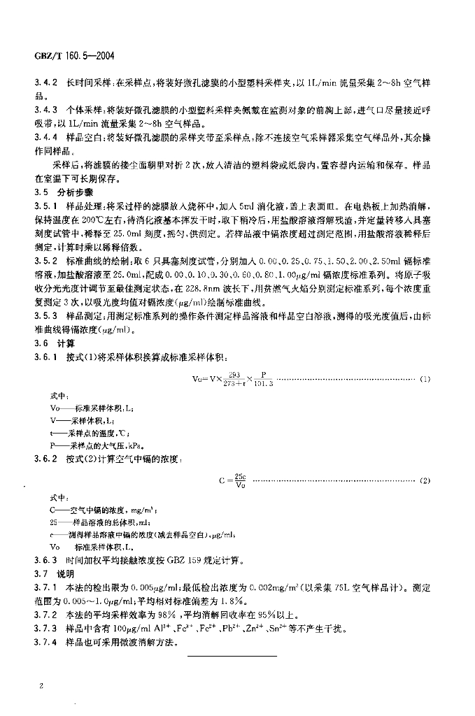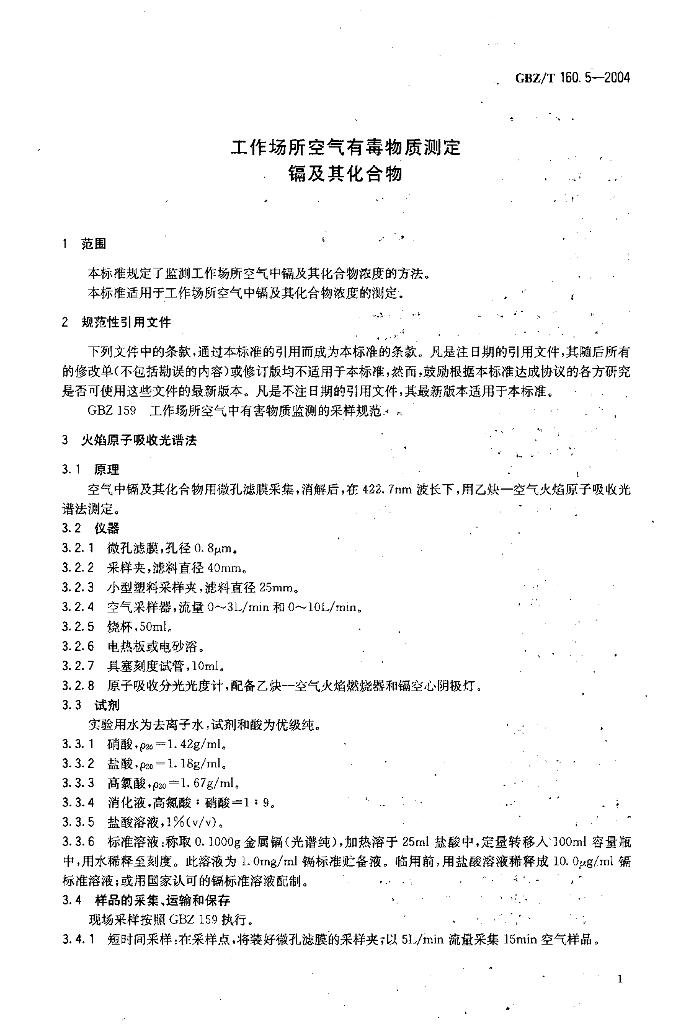 GBZ/T 160.5-2004 工作场所空气有毒物质测定 镉及其化合物