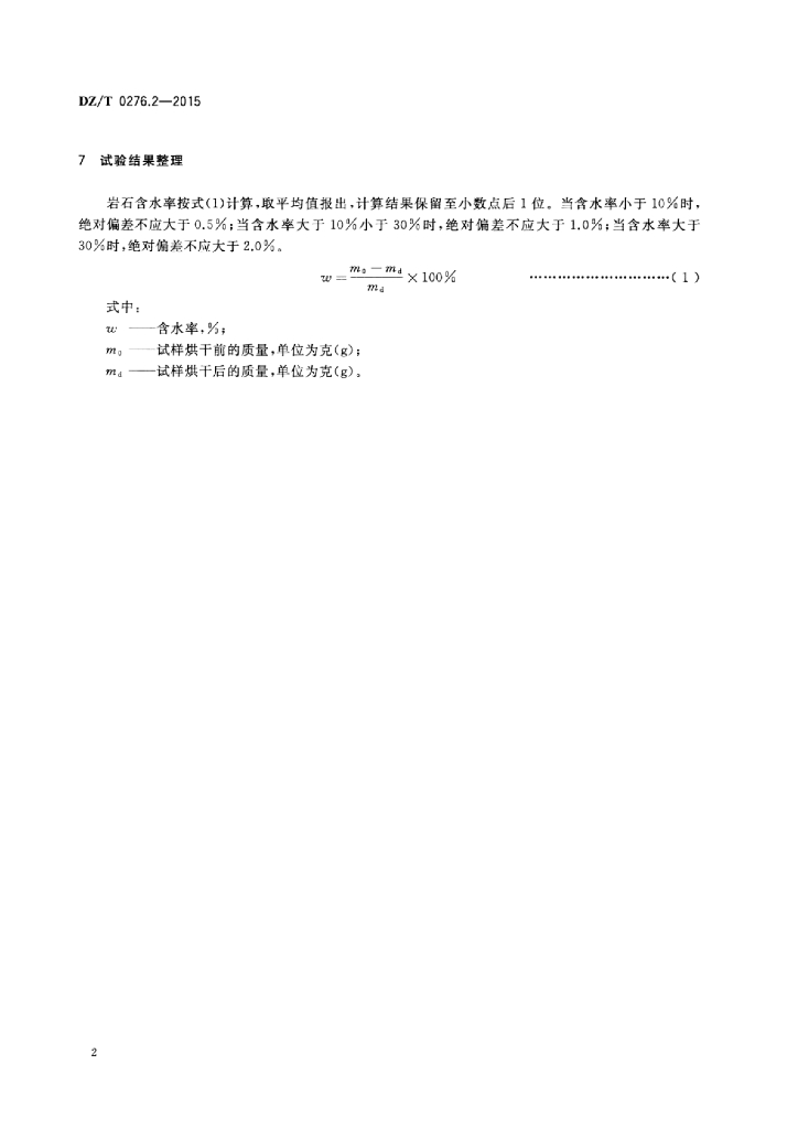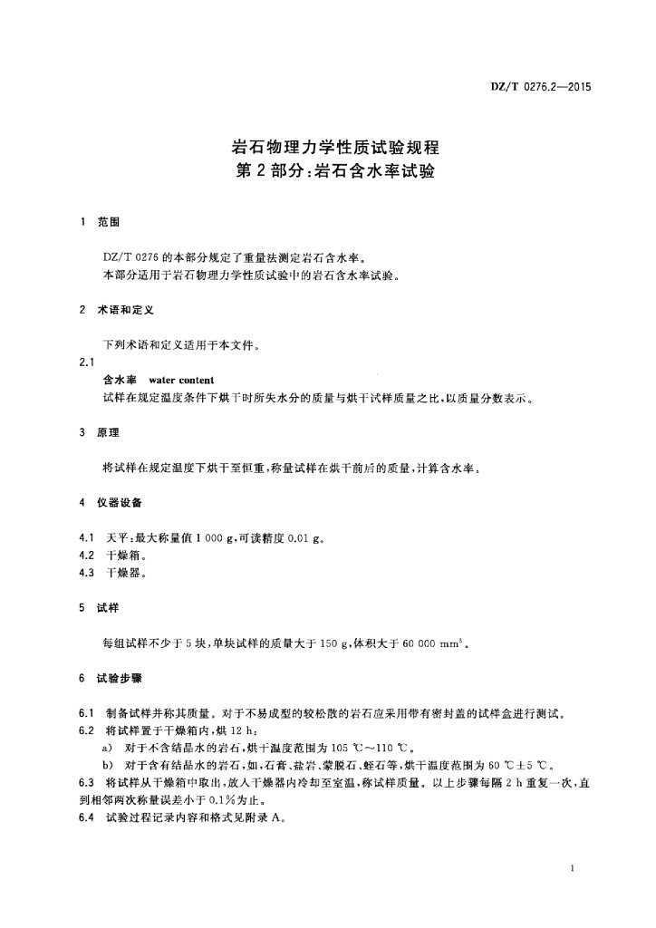 DZ/T 0276.2-2015 岩石物理力学性质试验规程 第2部分:岩石含水率试验