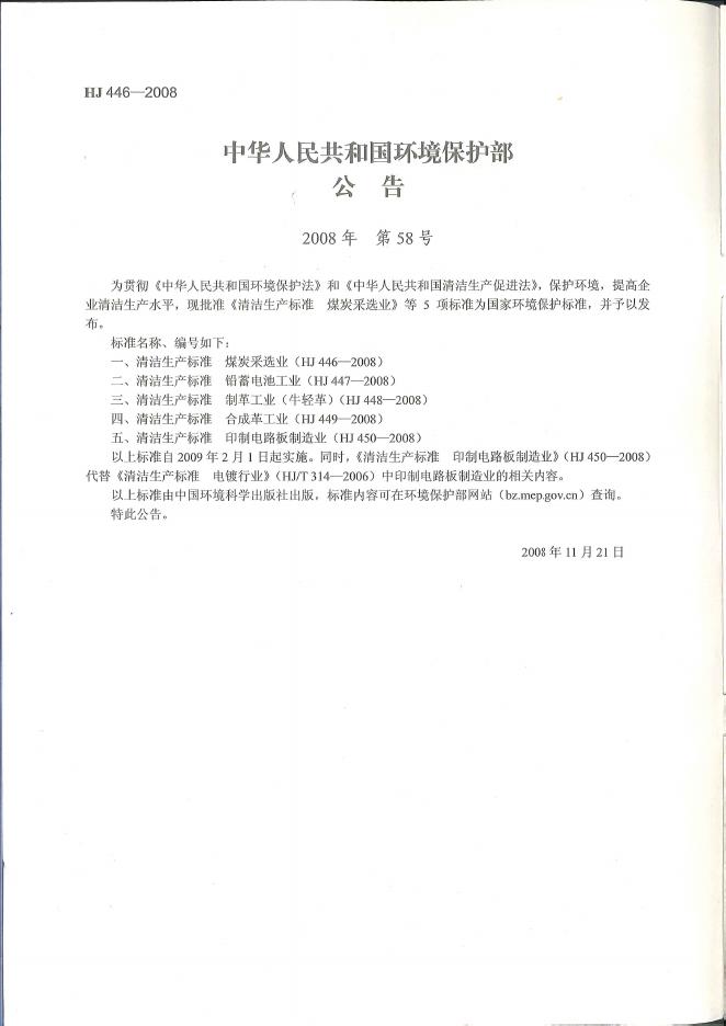 HJ 446-2008 清洁生产标准 煤炭采选业