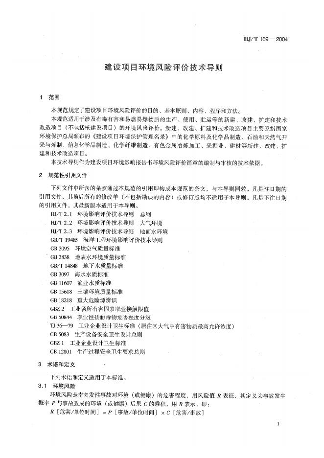 HJ/T 169-2004 建设项目环境风险评价技术导则