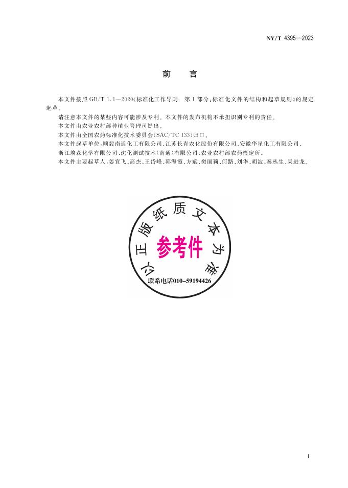 顺毅南通化工有限公司、江苏长青农化股份有限公司、安徽华星化工有限公司、浙江埃森化学有限公司、沈化测试技术(南通)有限公司、农业农村部农药检定所