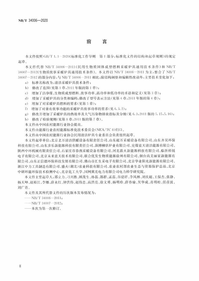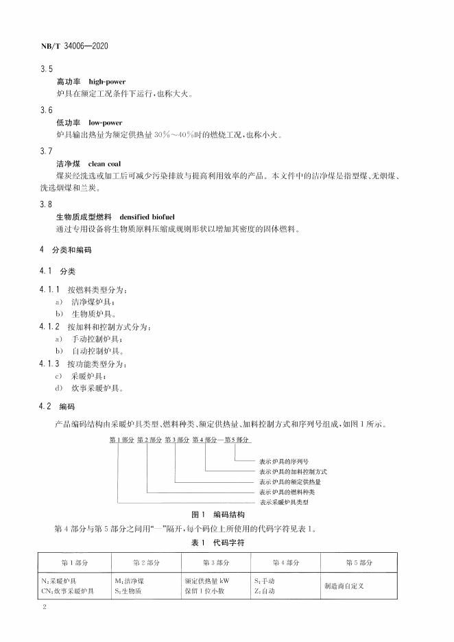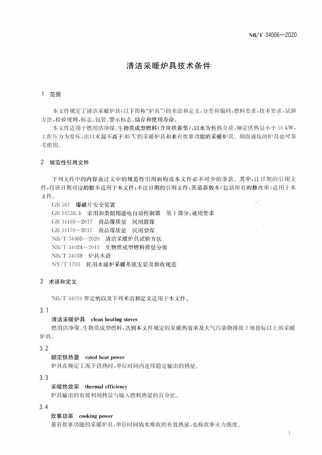 NB/T 34006-2020 清洁采暖炉具技术条件(含2024年第1号修改单)
