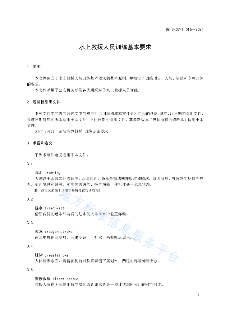DB3407/T 016-2024 水上救援人员训练基本要求