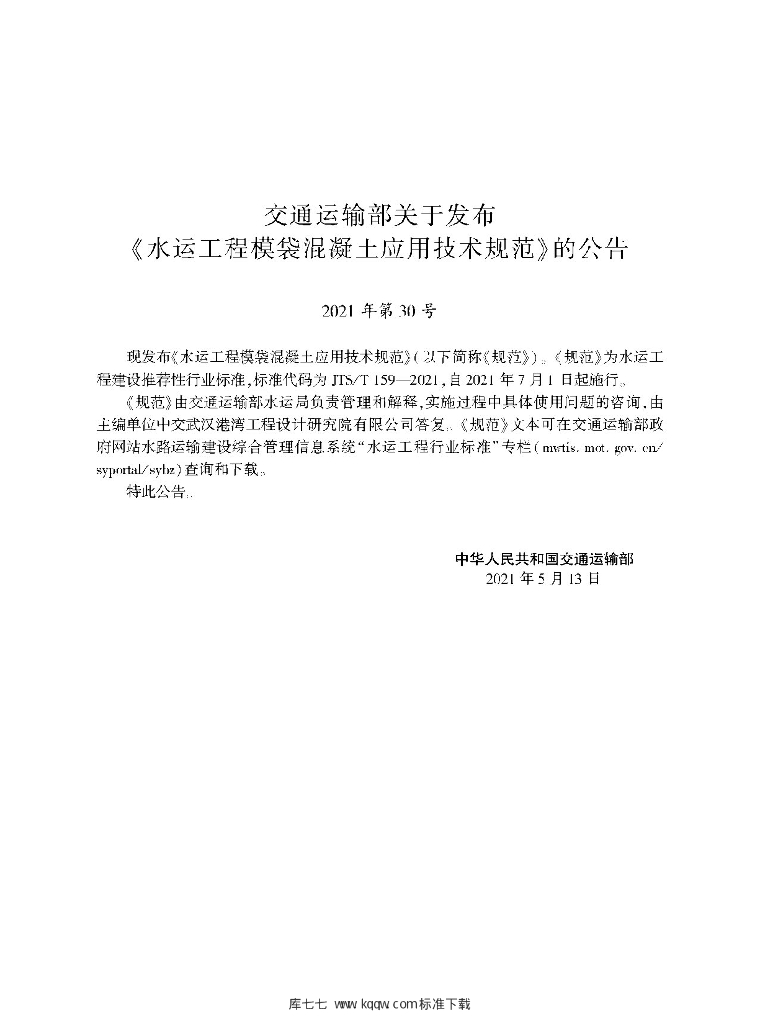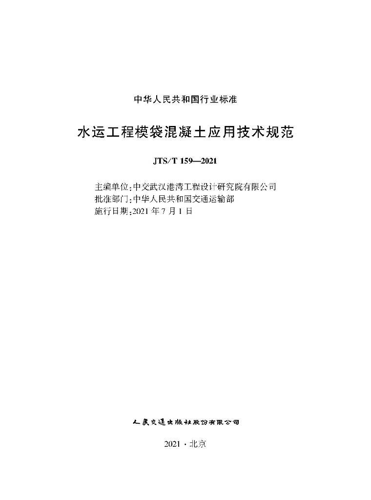 JTS/T 159-2021 水运工程模袋混凝土应用技术规范