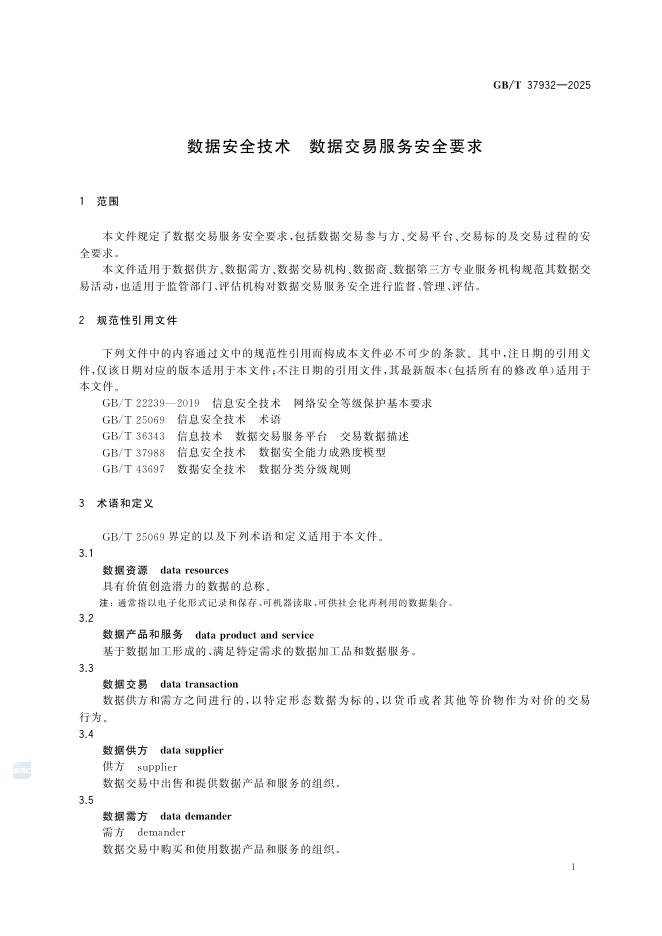 GB/T 37932-2025 数据安全技术 数据交易服务安全要求