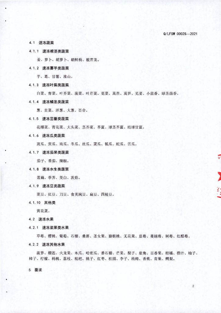 Q/LFSW 0002S-2021 速冻果蔬制品