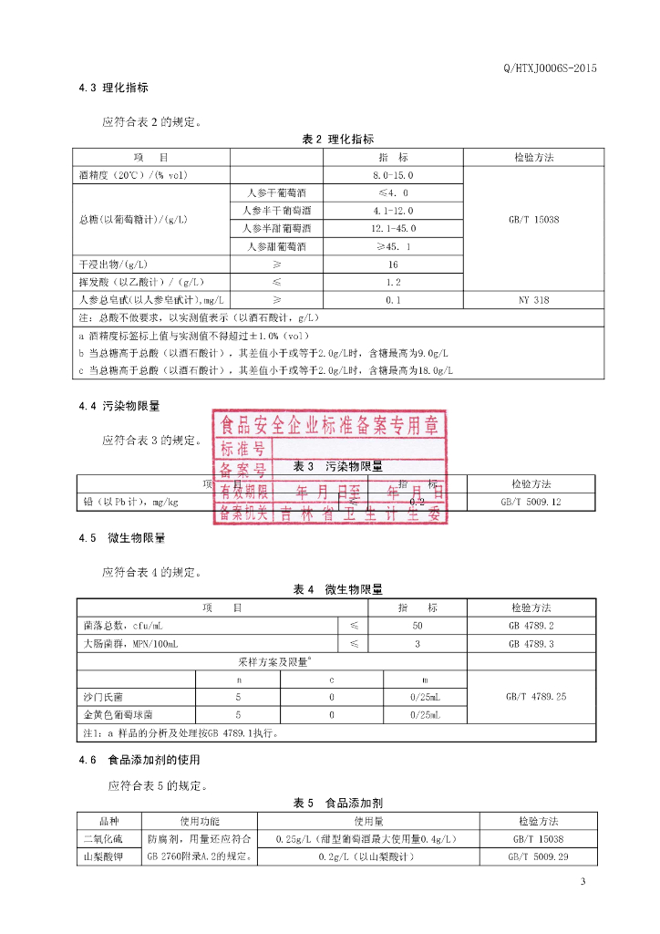 Q/HTXJ 0006S-2015 通化市得顺泉酒业有限公司 人参葡萄酒