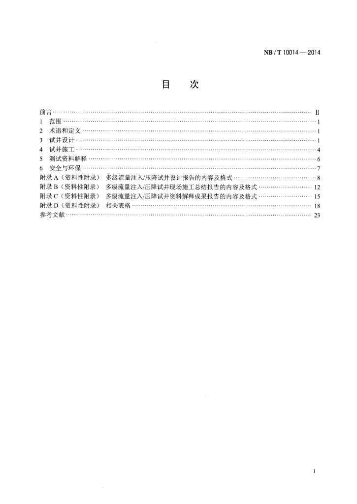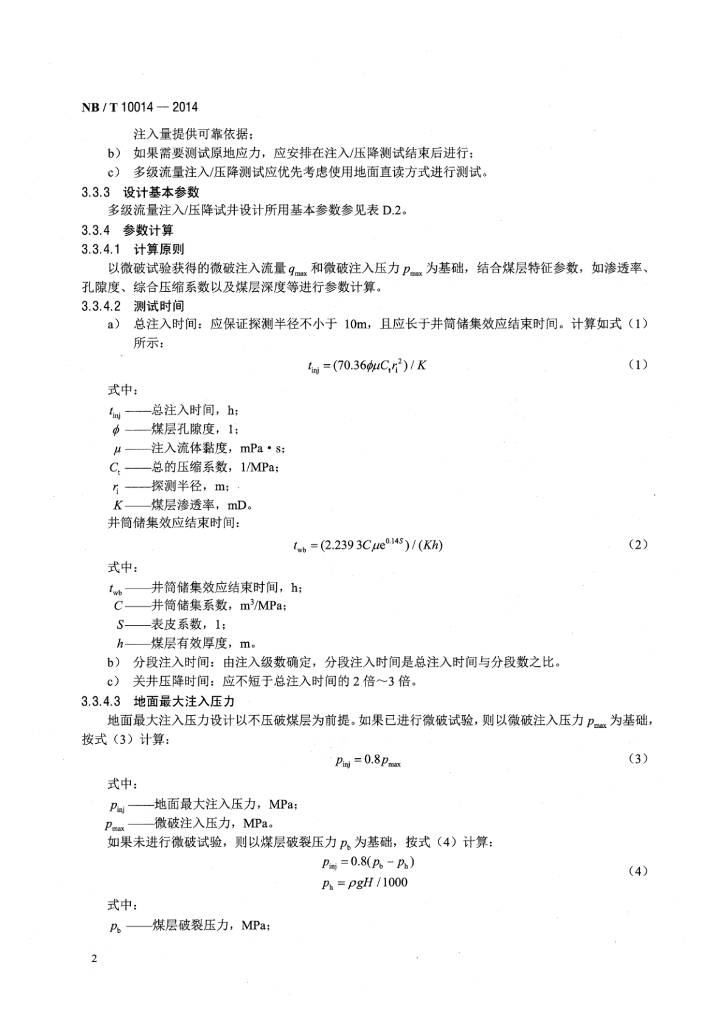 NB/T 10014-2014 煤层气井多级流量注入压降试井技术规范