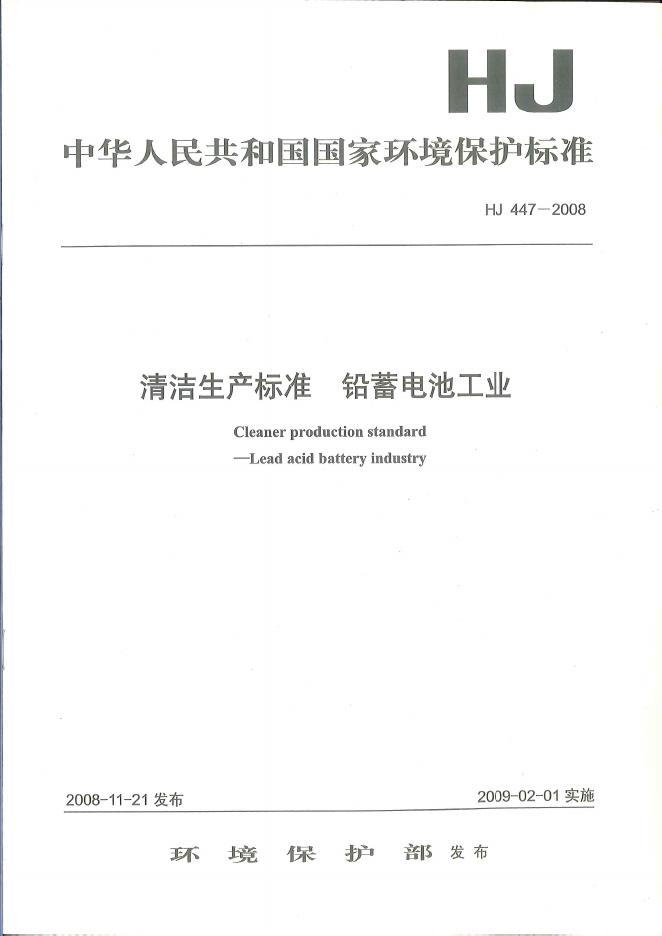 HJ 447-2008 清洁生产标准 铅蓄电池工业