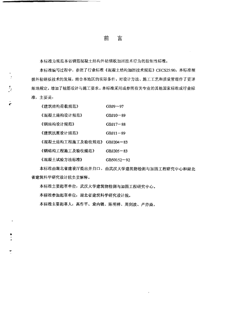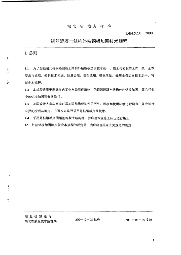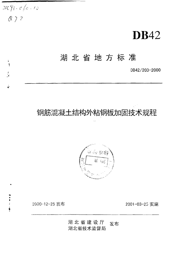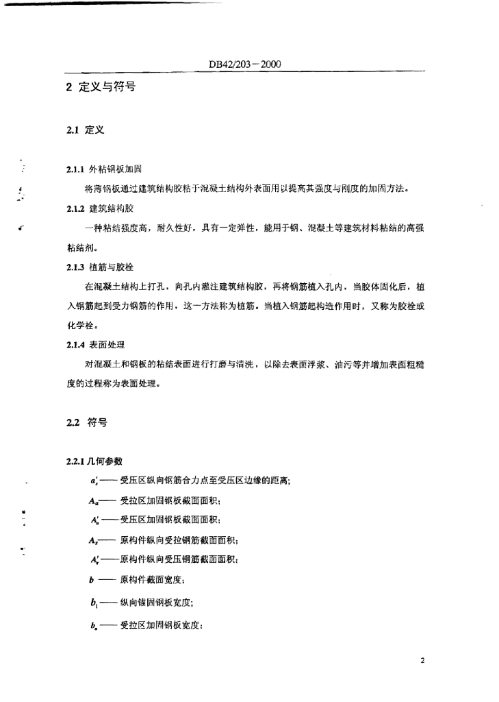 DB42/ 203-2000 钢筋混凝土结构外粘钢板加固技术规程