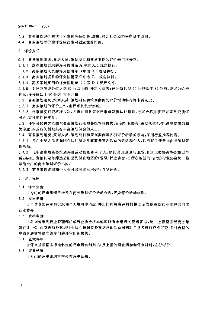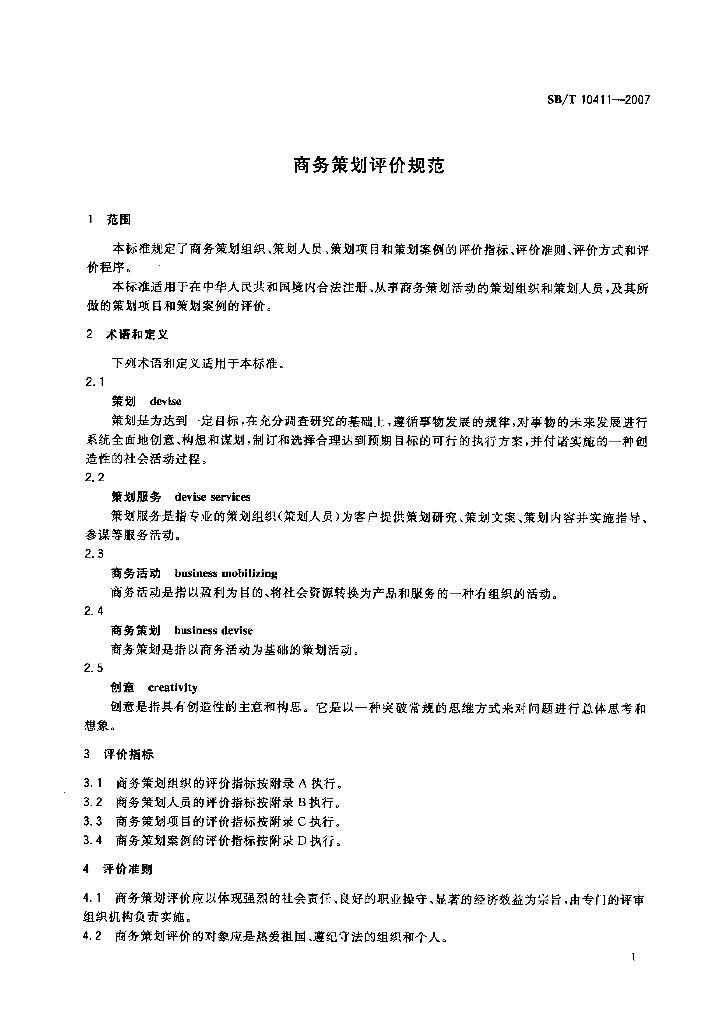 SB/T 10411-2007 商务策划评价规范