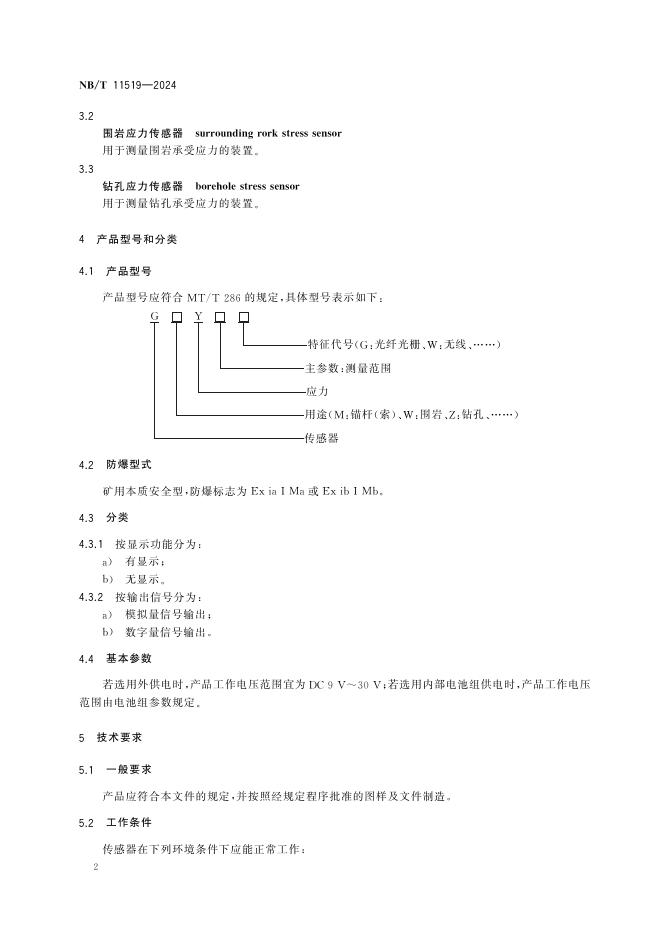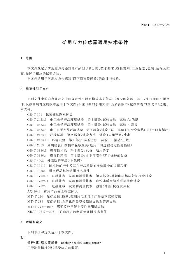 NB/T 11519-2024 矿用应力传感器通用技术条件