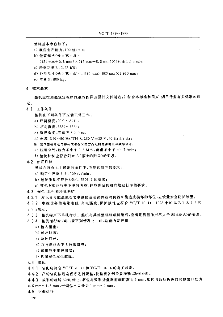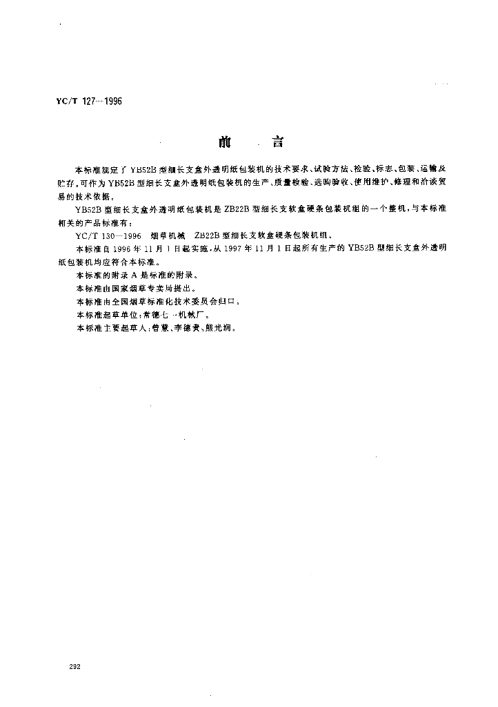 YC/T 127-1996 烟草机械 YB52B型细长支盒外透明纸包装机