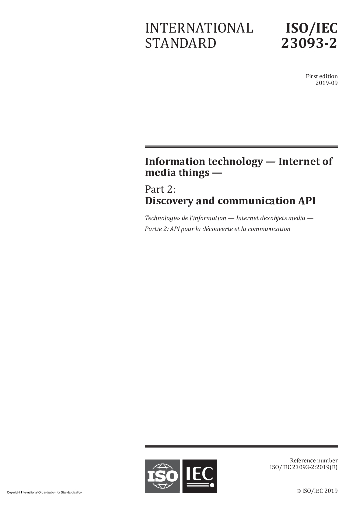ISO/IEC 23093-2-2019 信息技术 物联网 第2部分:发现和通信API
