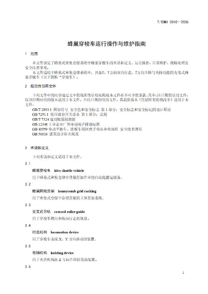 T/SDMI 0042-2026 蜂巢穿梭车运行操作与维护指南