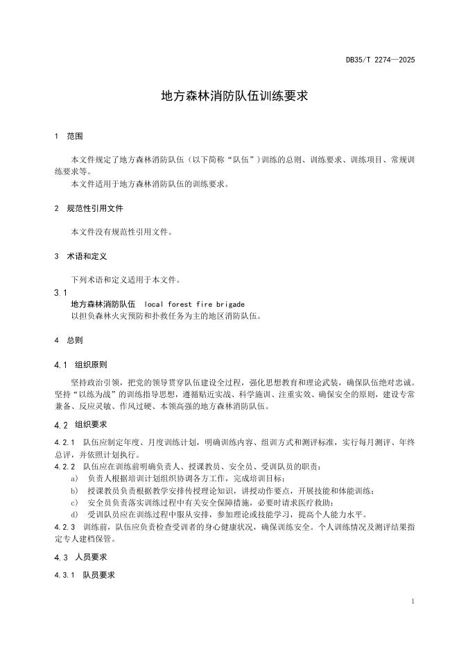 DB35/T 2274-2025 地方森林消防队伍训练要求