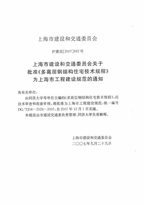 DG/TJ 08-2029-2007 多高层钢结构住宅技术规程