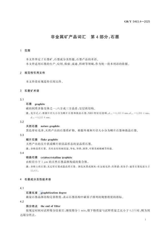 GB/T 5463.4-2025 非金属矿产品词汇 第4部分:石墨