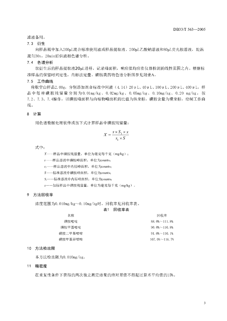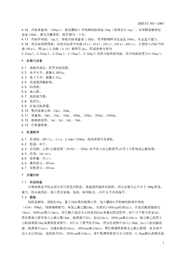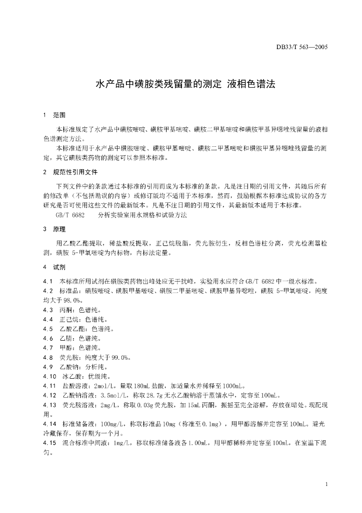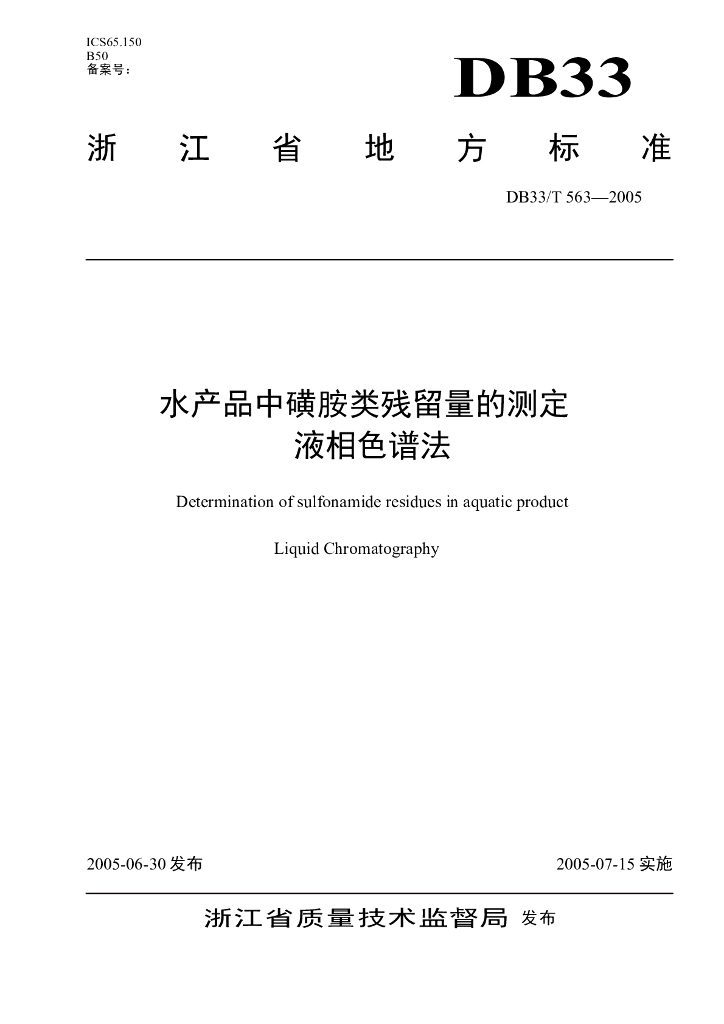 DB33/T 563-2005 水产品中磺胺类残留量的测定 液相色谱法