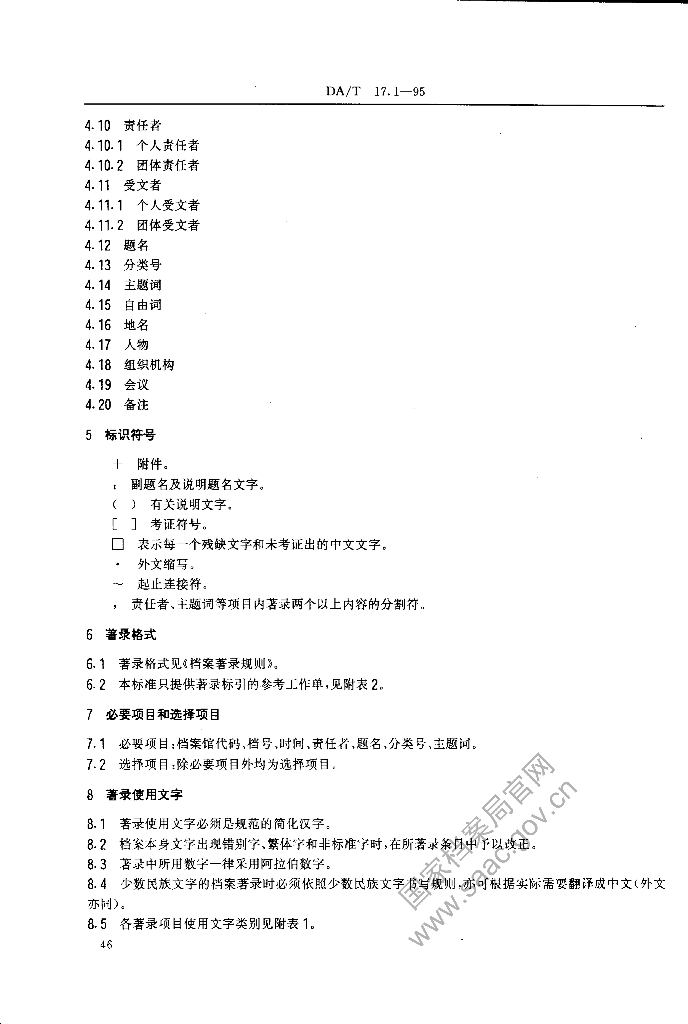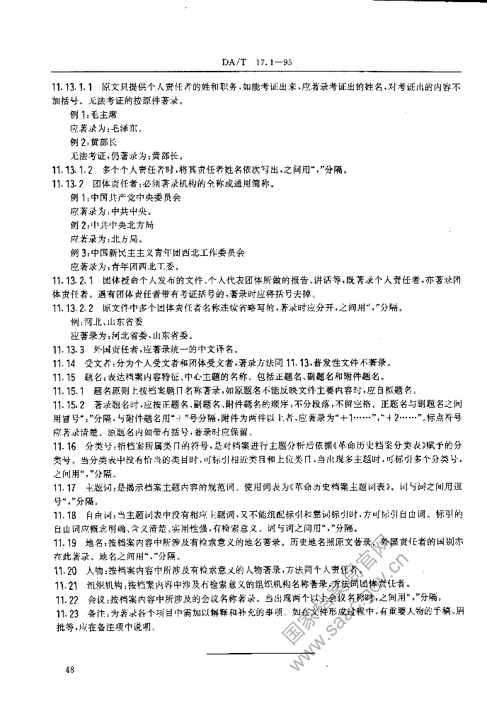 DA/T 17.1-1995 全国革命历史档案数据采集标准 革命历史档案著录细则