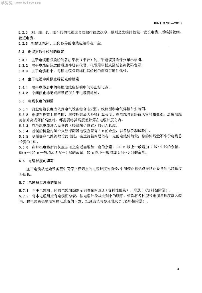 CB/T 3793-2013 船舶主干、区域电缆册编制要求