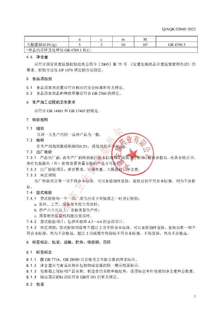 Q/AQK 0284S-2022 益生菌驼乳片(压片糖果)