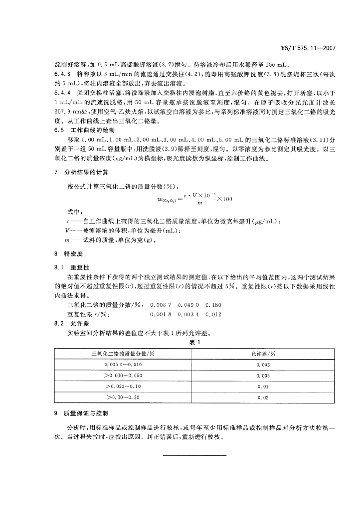 YS/T 575.11-2007 铝土矿石化学分析方法 第11部分:三氧化二铬含量的测定 火焰原子吸收光谱法