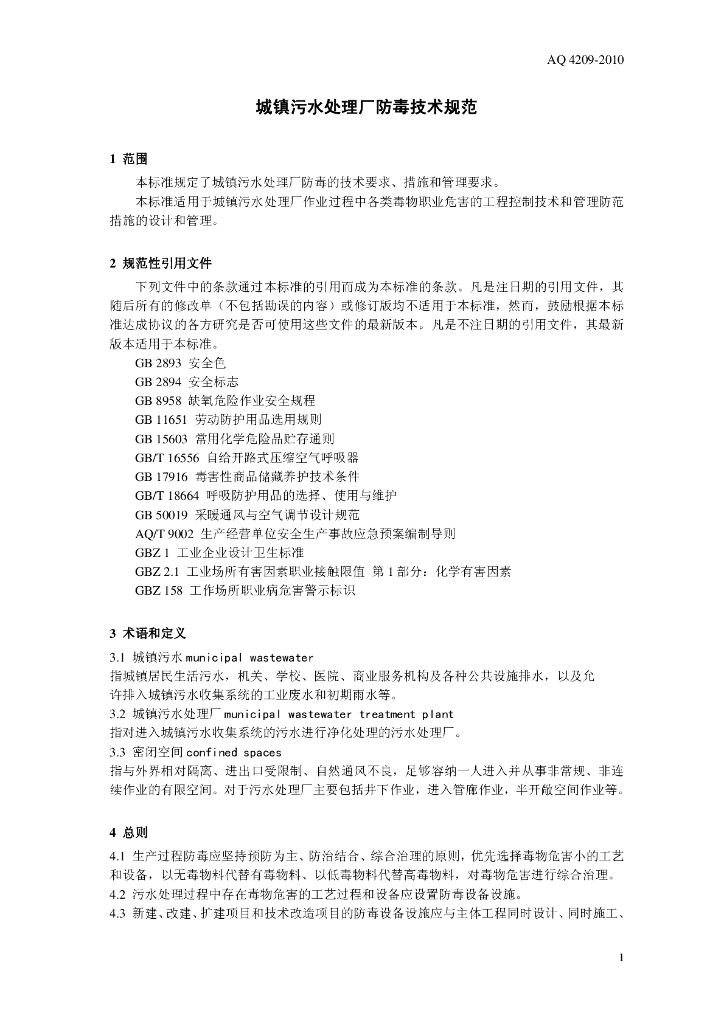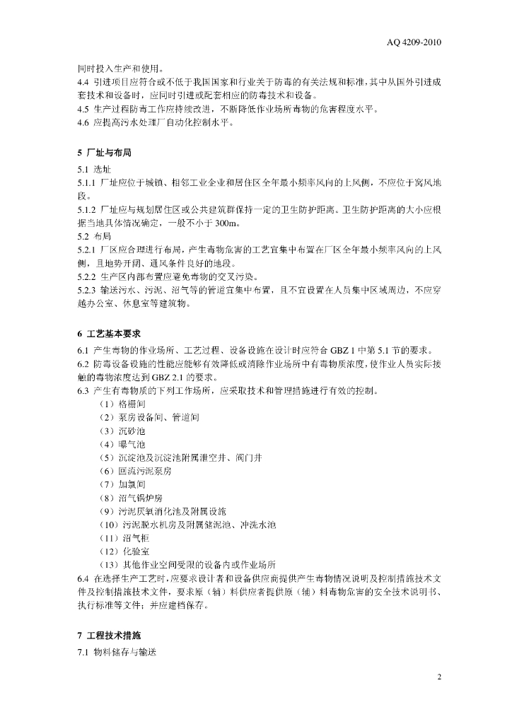 WS 702-2010 城镇污水处理厂防毒技术规范