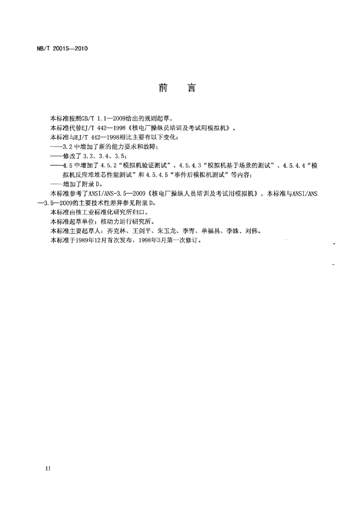 NB/T 20015-2010 核电厂操纵人员培训及考试用模拟机