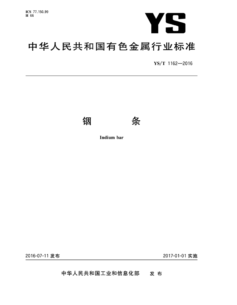 YS/T 1162-2016 铟条