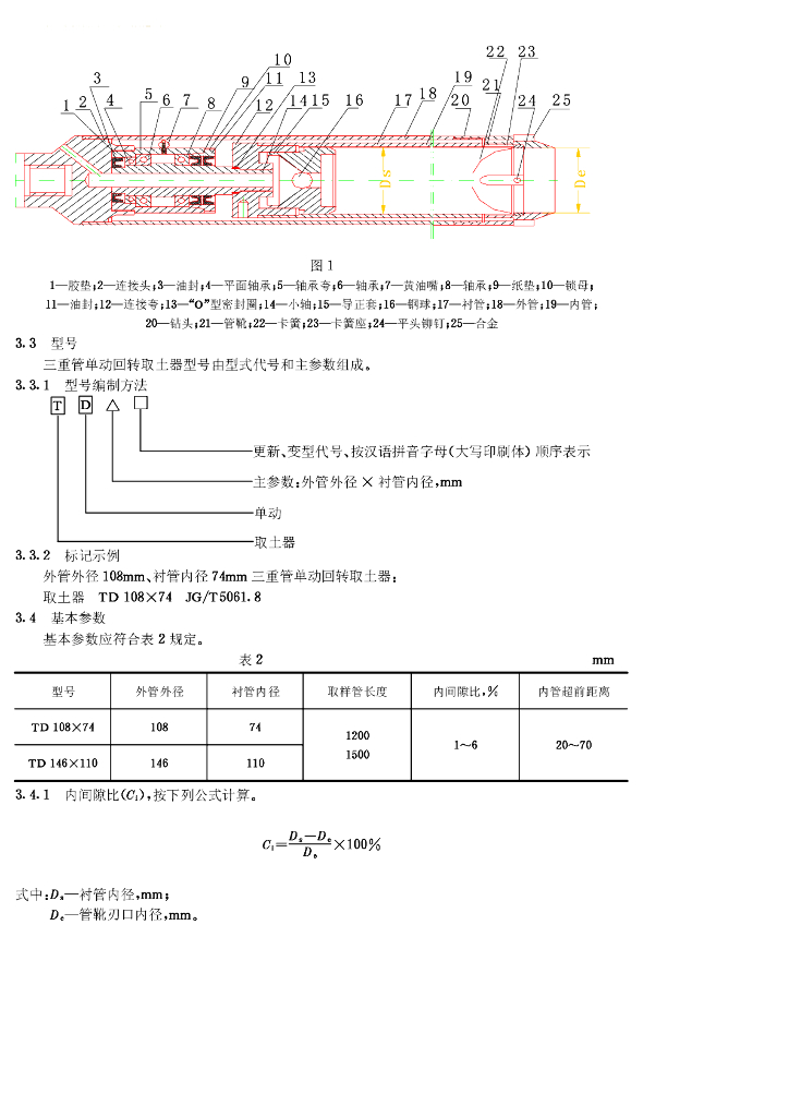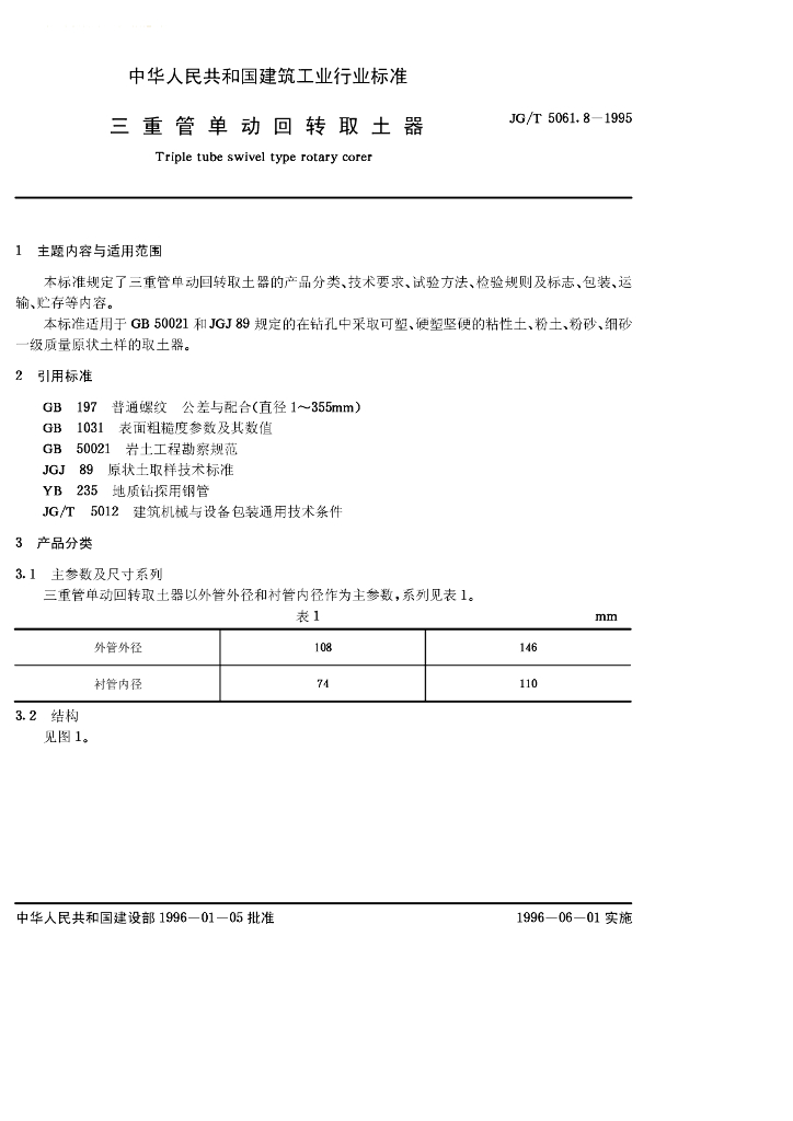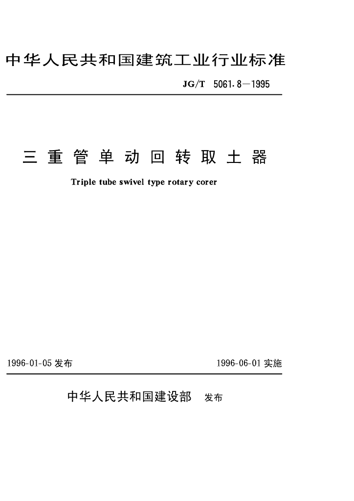 JG/T 5061.8-1995 三重管单动回转取土器