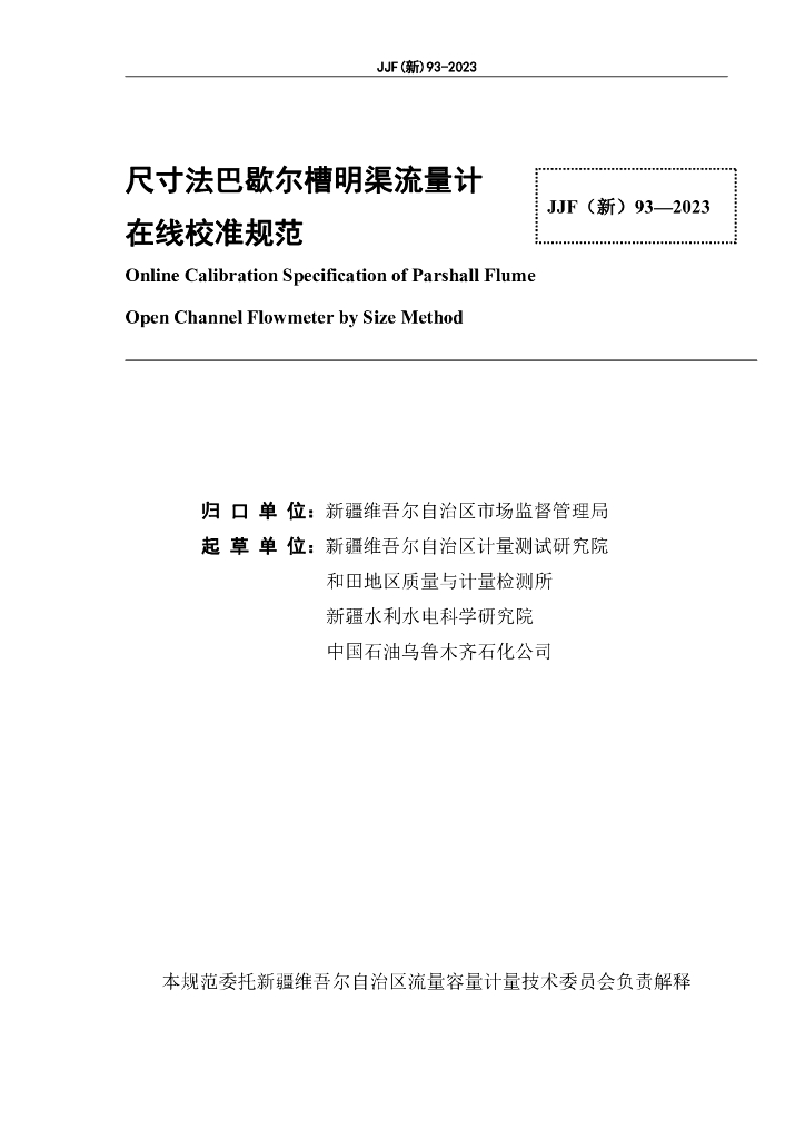 新疆维吾尔自治区计量测试研究院、和田地区质量与计量检测所、新疆水利水电科学研究院、中国石油乌鲁木齐石化公司
