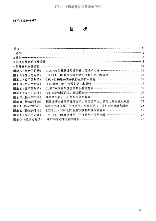 SY 5132-1992 测井原始资料质量要求