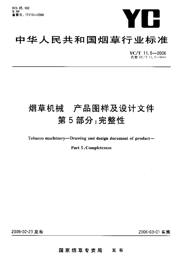 YC/T 11.5-2006 烟草机械产品图样及设计文件第5部分完整性